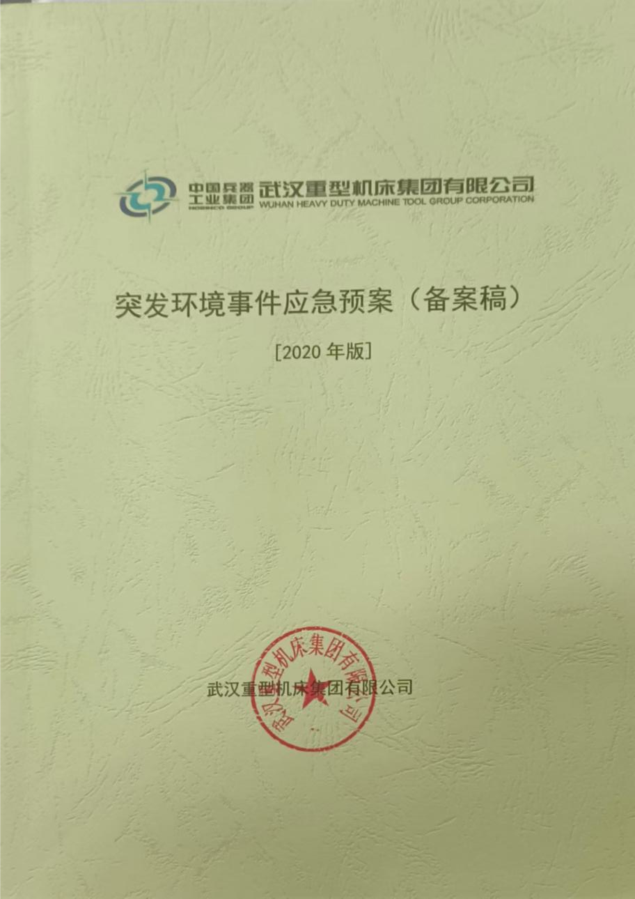 武漢重型機床集團有限公司突發環境事件應急預案已備案,有效時間2021年12月1日至2024年12月1日。